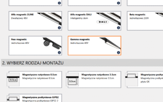 - Montaż opraw: adaptery do kliknięcia, selektor faz (w 3-faz), kontrola polaryzacji w 48 V.